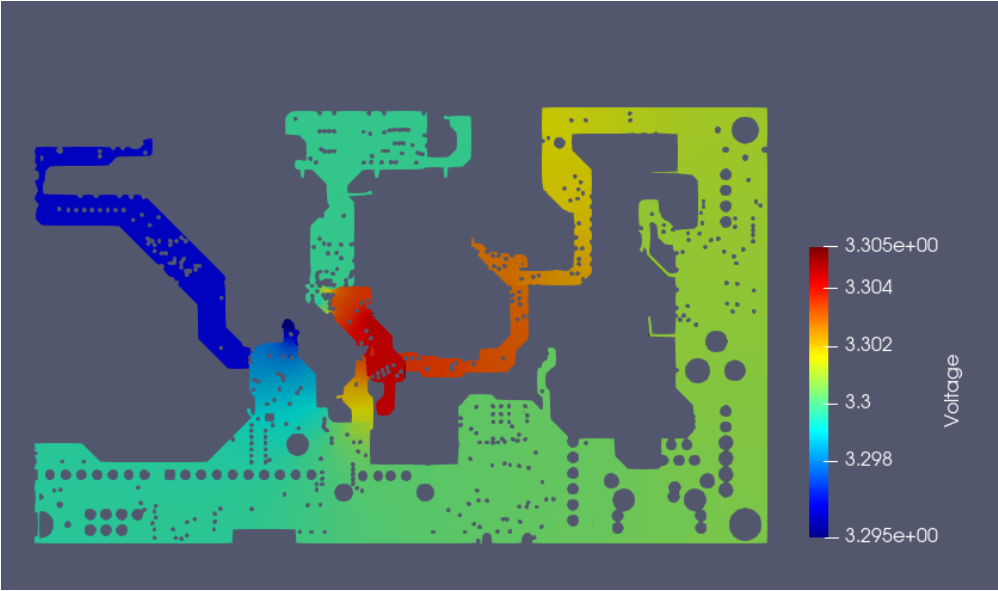 本案例是16層PCB電源背板,在載大電流的情況下可能會出現(xiàn)壓降過大,導(dǎo)致元器件欠壓或過孔電流密度較大導(dǎo)致超出過孔承載裕量等問題,嚴(yán)重情況下甚至?xí)龎倪^孔。通過PhysimDC仿真分析本案例,驗證載240A大電流時是否出現(xiàn)上述問題,載流方案是否可行,大通流的情況下是否帶來過大的功耗,過孔載流是否正常,壓降是否在規(guī)定裕量內(nèi)。